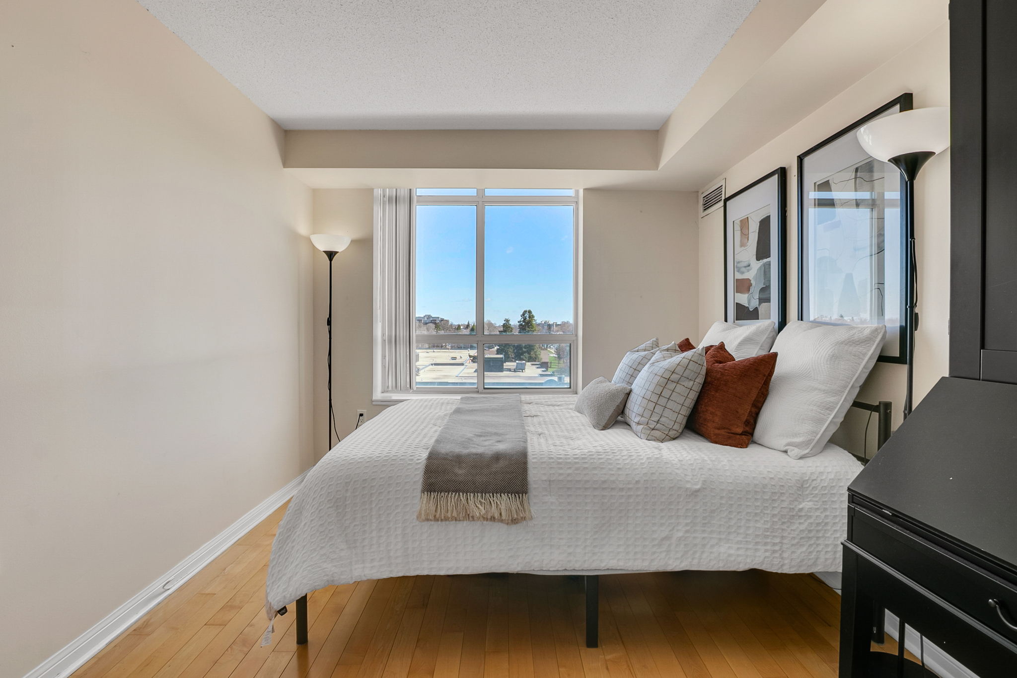 Welcome to The Shermount, a Tridel built condominium, where space, style, and everyday convenience come together in this rarely offered 1,012 sq ft, 2-bedroom corner unit. This thoughtfully upgraded suite features a fully renovated kitchen, roomy bedrooms, a private 10x14' terrace, with a rare personal EV-charger-equipped parking, making this condo a smart long-term choice for end-users.
