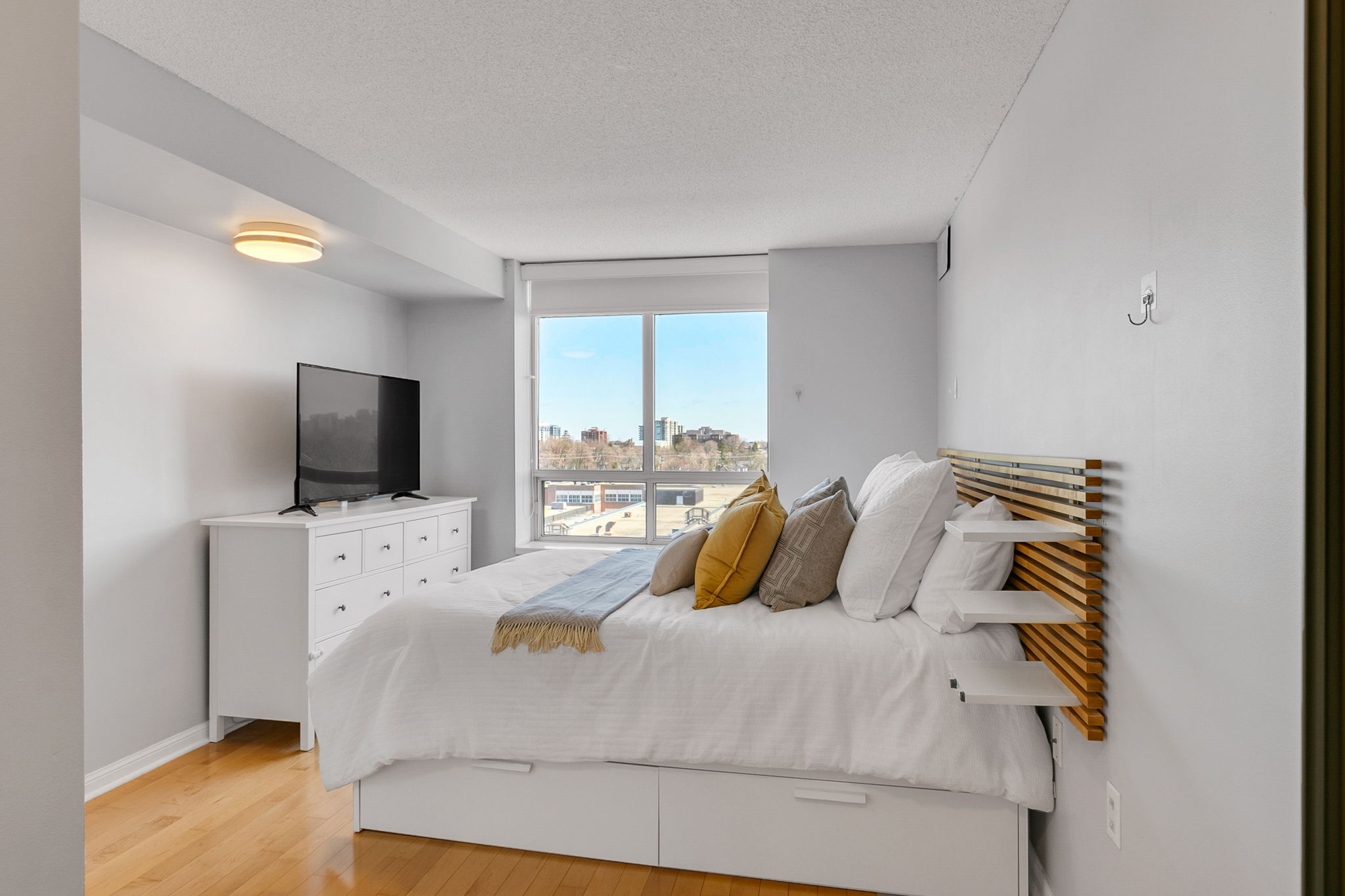 Welcome to The Shermount, a Tridel built condominium, where space, style, and everyday convenience come together in this rarely offered 1,012 sq ft, 2-bedroom corner unit. This thoughtfully upgraded suite features a fully renovated kitchen, roomy bedrooms, a private 10x14' terrace, with a rare personal EV-charger-equipped parking, making this condo a smart long-term choice for end-users.